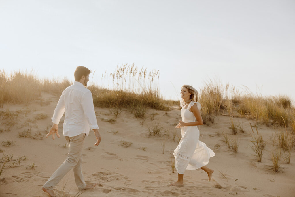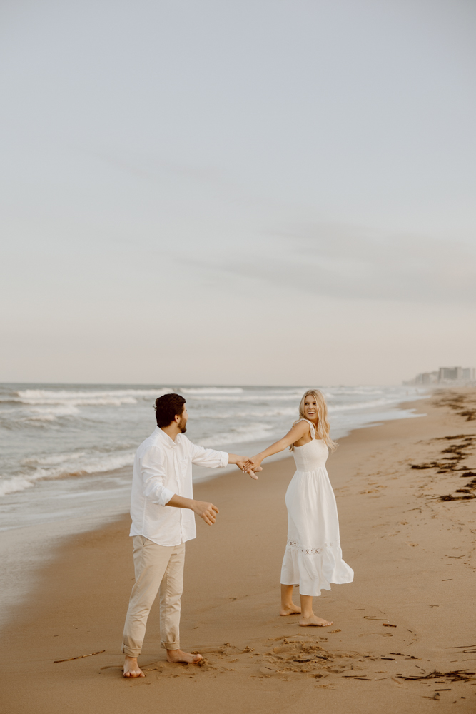 This session was honestly pure magic! They drove for hours just to get to VA Beach, and you could feel their excitement and love as soon as they got there. We spent over an hour wandering around the beach, capturing the sweetest moments of them having the time of their lives in those beautiful sand dunes and down by the water, looking for shells as we went.