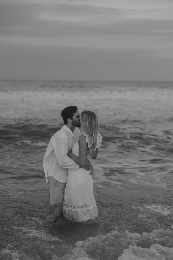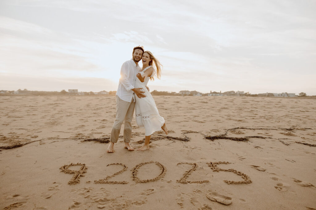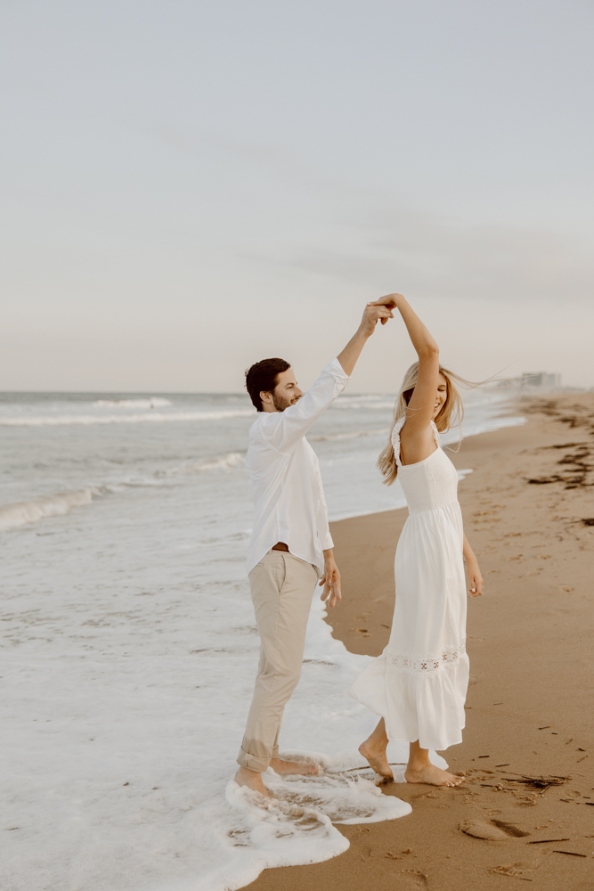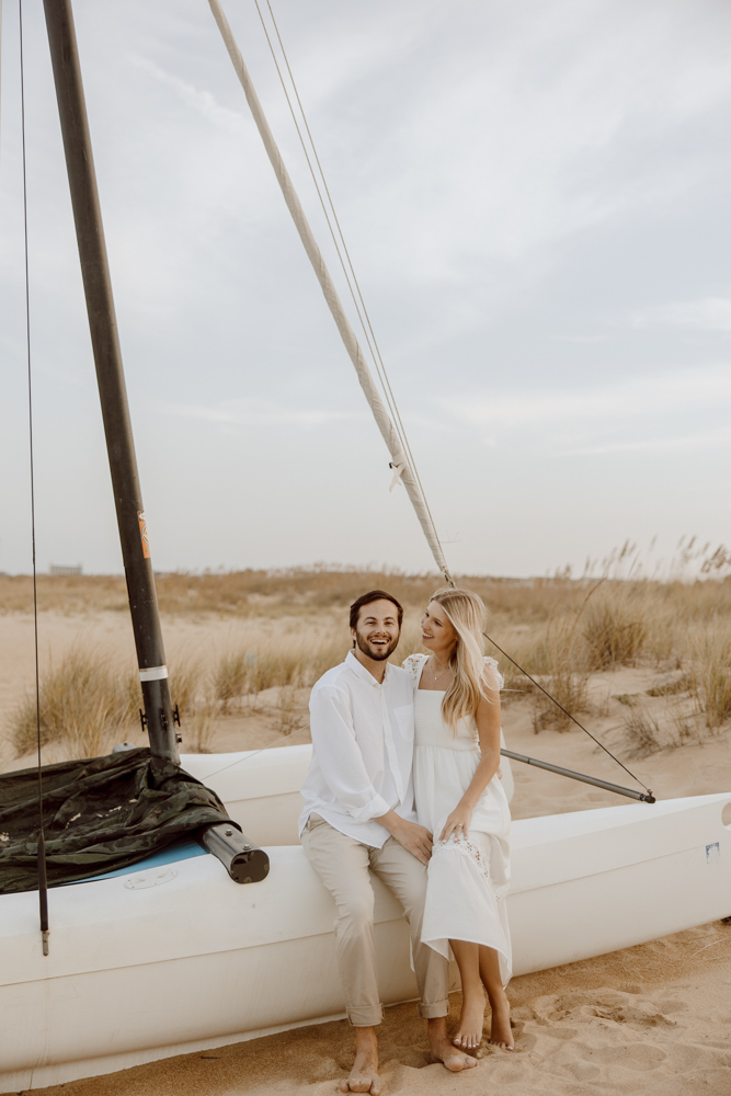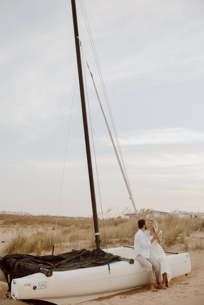 The weather was amazing, and the sun was setting perfectly with that golden glow overlooking the oceanfront. We even came across this adorable sailboat that we used for some fun photos! At one point, Olivia and Dylan scribbled their wedding date in the sand marking the year countdown to their big day! The best part? They decided to run into the ocean together during blue hour at the end of the evening. They really took one for the team, even sitting down in the sand while the waves crashed over them.
