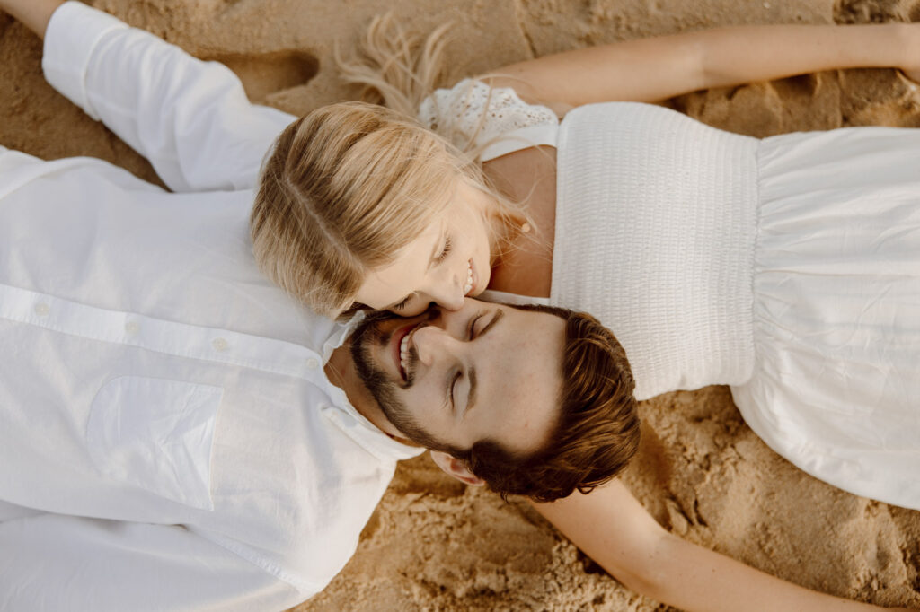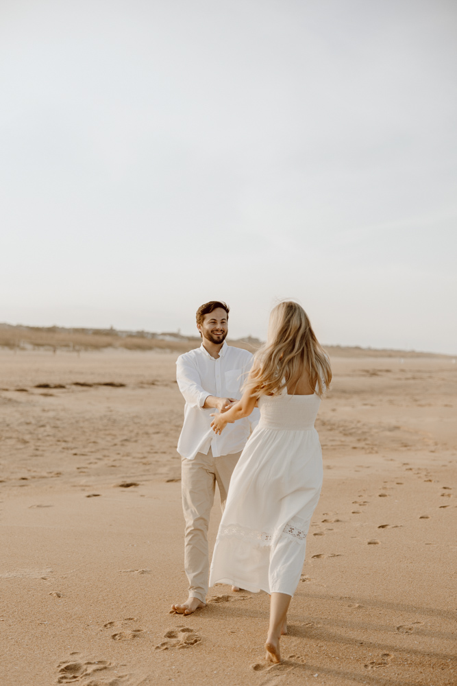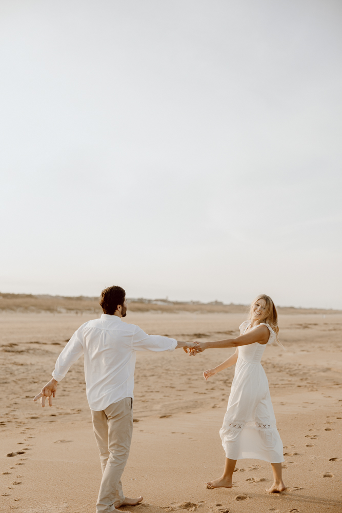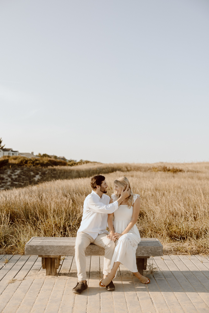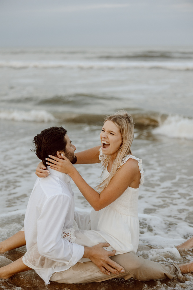The weather was amazing, and the sun was setting perfectly with that golden glow overlooking the oceanfront. We even came across this adorable sailboat that we used for some fun photos! At one point, Olivia and Dylan scribbled their wedding date in the sand marking the year countdown to their big day! The best part? They decided to run into the ocean together during blue hour at the end of the evening. They really took one for the team, even sitting down in the sand while the waves crashed over them.
