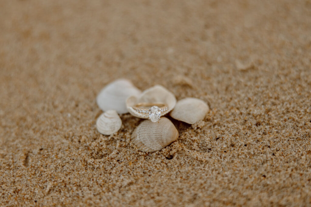 The Ring Shot! Using shells we collected throughout their engagement session in Virginia Beach!