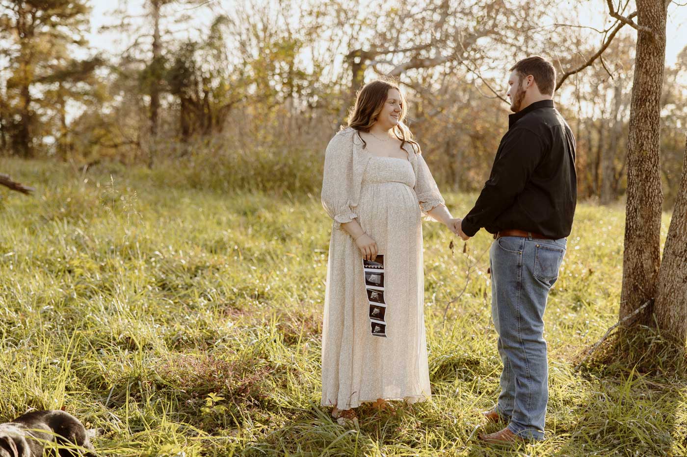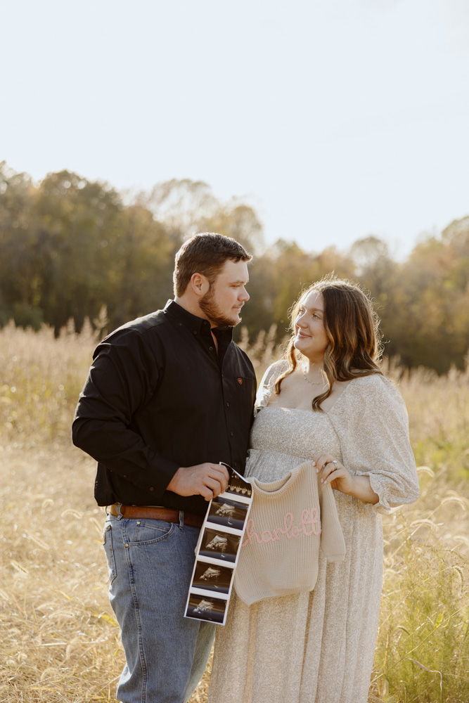 There’s something incredibly special about seeing past wedding clients return to capture new chapters in their lives, and that’s exactly how this session with Kathleen and JC was. Having met them shortly before their engagement and photographing every moment since, I was SO excited to reunite with them for a maternity session in the stunning field Kathleen suggested near New Kent, Virginia. This location, with it’s tall, grassy fields, was perfect and meaningful to them as it’s their family property. Photographing these two now, holding an ultrasound and embracing the baby bump, the excitement and giggles were in full force. It’s moments like these that make my job as a photographer so rewarding; turning clients into friends and being part of their journey through life’s milestones.