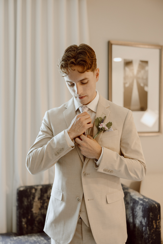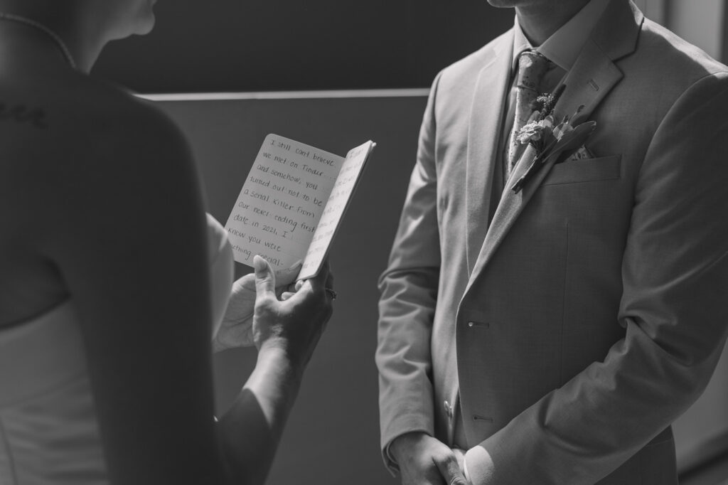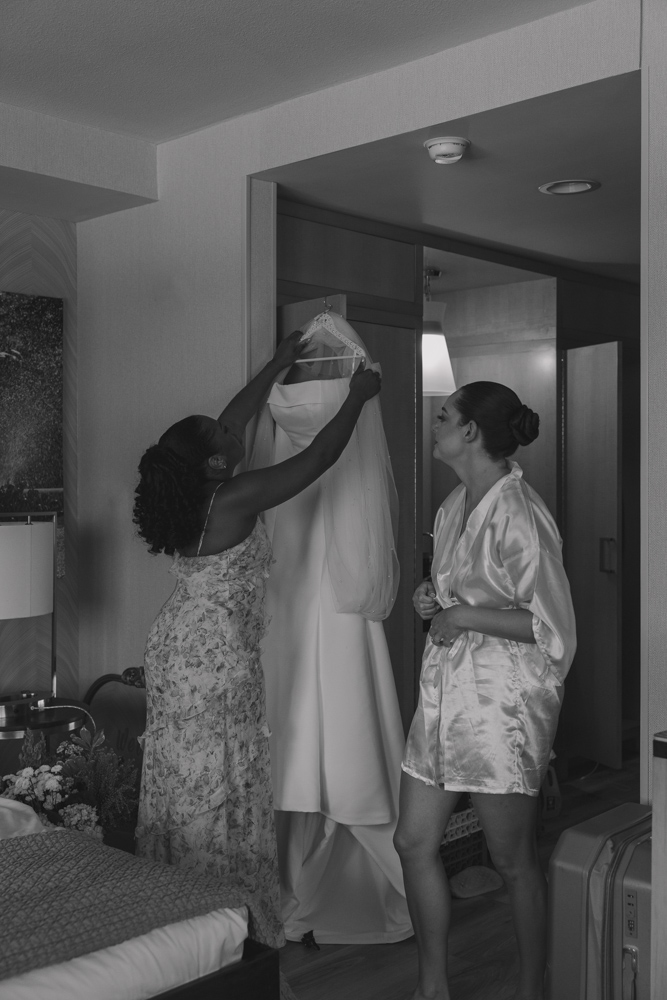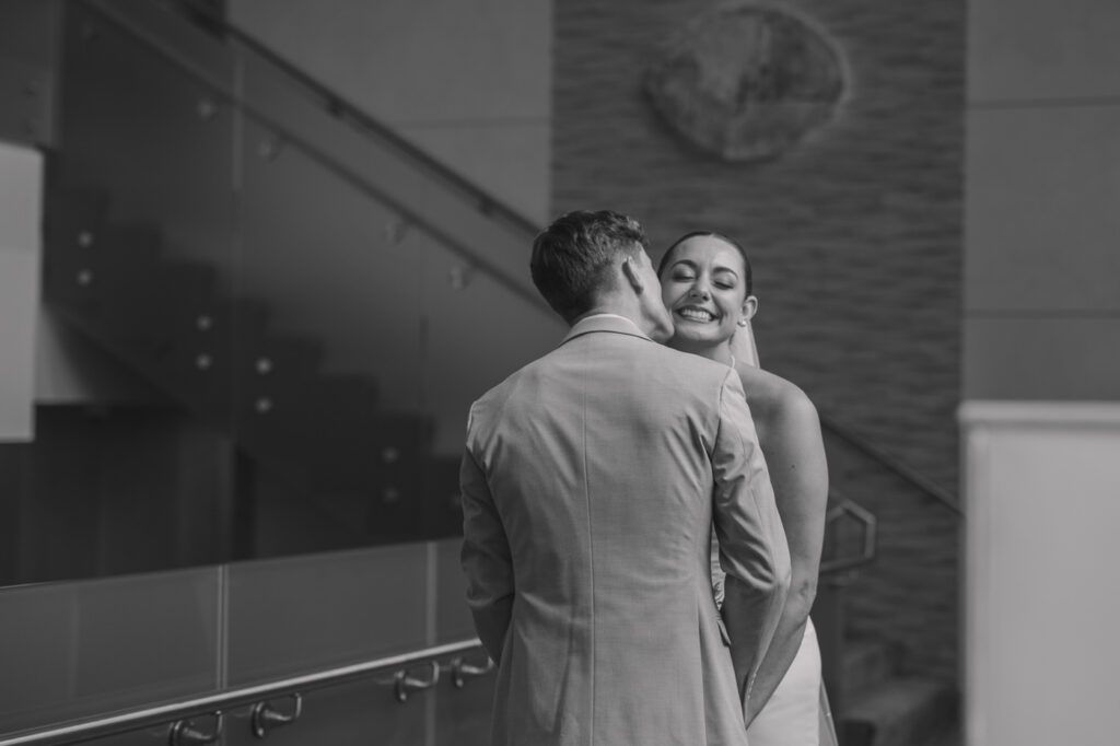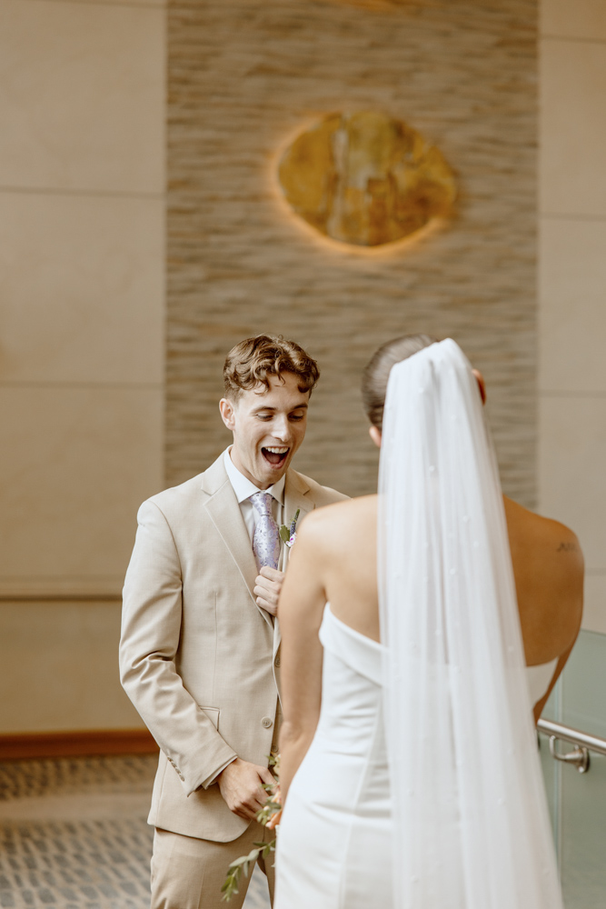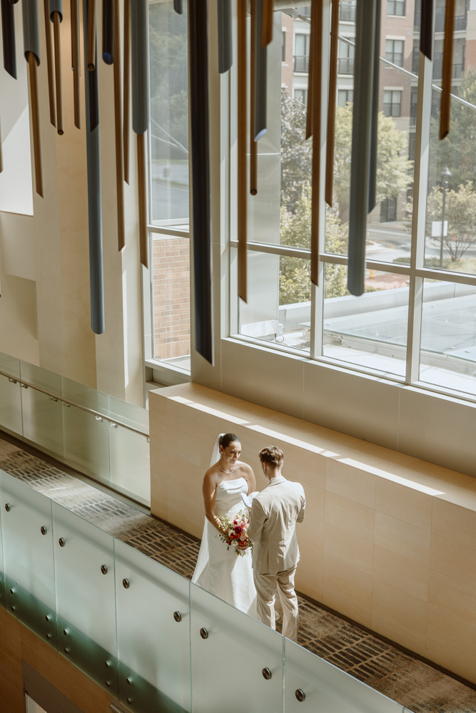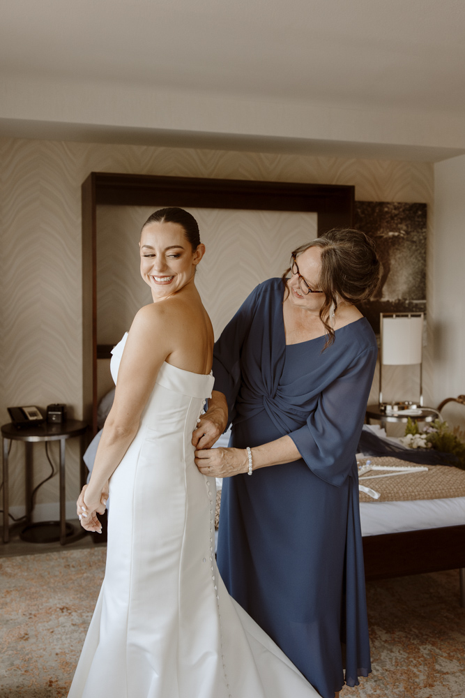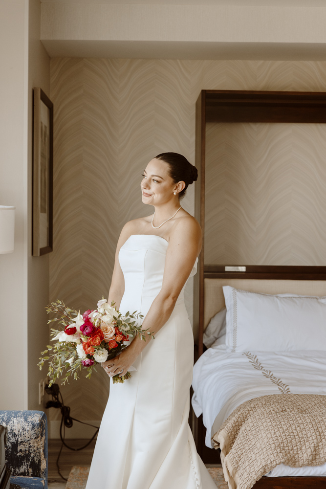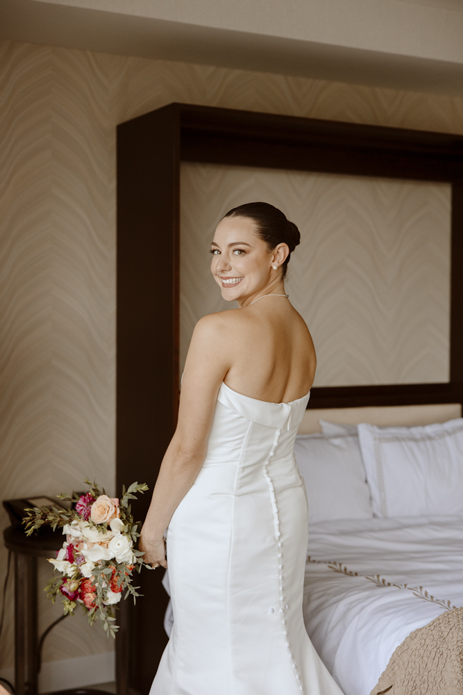 The day began with the couple getting ready at a nearby hotel. After being zipped into the dress and enjoying a first look with her bridesmaids, Tara and JP shared an intimate first look together. This allowed them to exchange personal vows to each other in private and have a moment before the the rest of the day’s plans. This decision was beautiful, allowed them to travel to the venue together with all their friends, and start capturing their portraits before guests even arrived. By photographing the wedding party and romantic portraits prior to the ceremony, Tara and JP had more time afterwards to mingle with their guests.